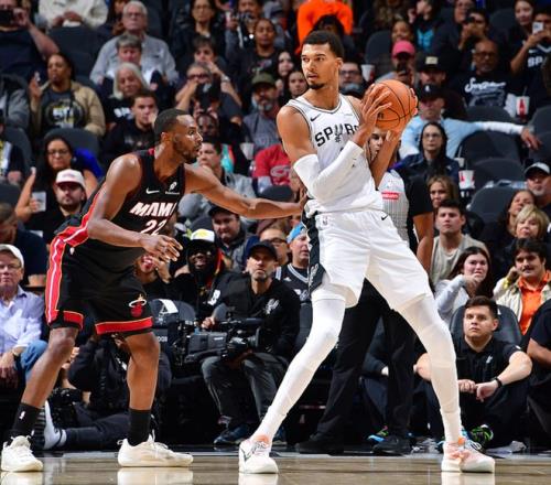 马刺主场迎战热火,马刺缺少了福克斯、索汉、科内特、奥利尼克,战力折损很大,热火缺少了鲍威尔、希罗,战力折损小于马刺。本赛季热火状态不错,在揭幕战惜败给魔术后,他们取得3连胜,击败了灰熊、尼克斯、黄蜂,3场比赛赢了67分,势头非常猛,今日热火给马刺带来了很大冲击,一度压制马刺,不过马刺拥有怪兽球员文班,还有上赛季的最佳新秀卡斯尔,在天赋上马刺更胜一筹,最终马刺以107-101击败热火,取得了开赛5连胜。文班23中10砍下27分18板6助5帽,卡斯尔12中7得到21分8板4助4断,热火方面阿德巴约27中12得到31分10板3助,威金斯18中11得到24分6板2助2断。