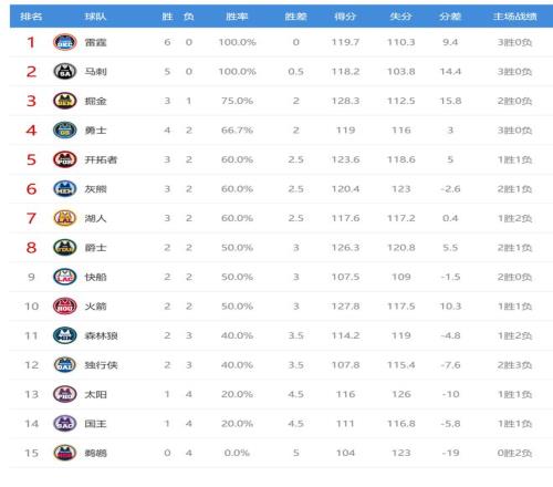 今日比赛后西部的掘金、勇士排名互换,其他球队排名不变: