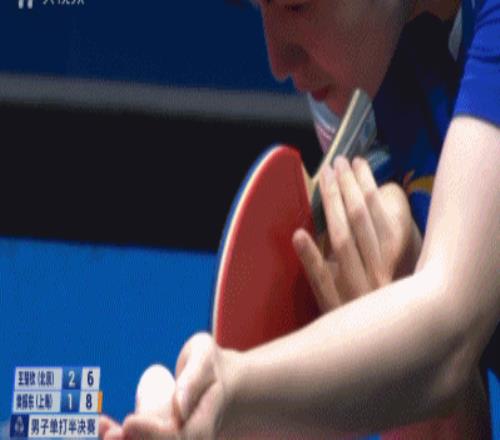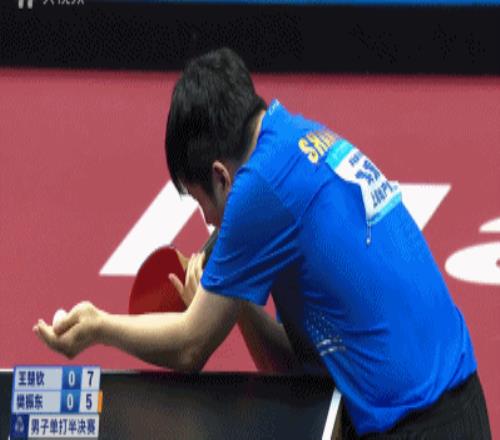 局分打平,但这时候场面已经开始向樊振东倾斜。他高抛的变化开始给王楚钦压力,加上王楚钦只用一套发球,到现在变化都抖搂差不多了,前三板的形势此消彼长,让樊振东的战术更单纯:尽量拧起来打相持——然后就是一波开局6-2领先。王楚钦追到6-4,樊振东叫了暂停;之后到了7-5,樊振东这个高抛又出场了:这次是个死转直线下旋。