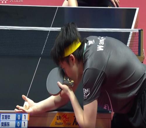 于是这球晃到王楚钦,侧身失误了。