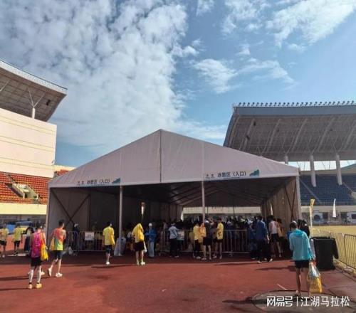 终点最大的变化,是体育中心拿出来用了,将拉伸、冰敷以及发奖仪式放在场内,且有多个适合拍照打卡的背景板,仪式感甚强。