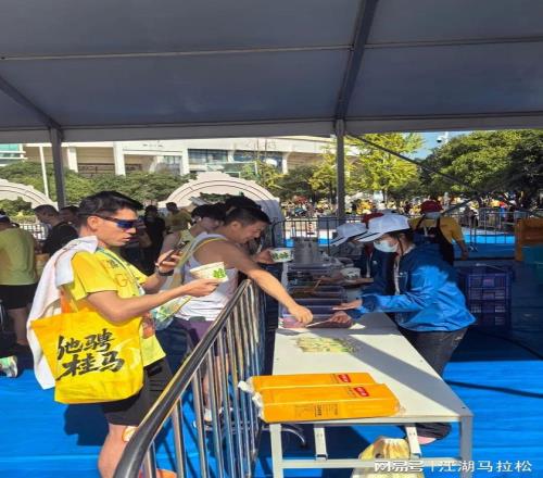 美食区也有点“鸟枪换炮”的味道,通道很多,想吃碗米粉,也不用排太长的队了。其实完赛后服务挺多的,不过我印象中有点点散乱,应有较大的优化空间。