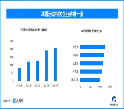 从企业注册数量趋势来看,近五年间,冰雪运动相关企业的注册数量呈现出逐年增长的态势,并在2024年达到顶峰。天眼查股东信息和股权全景穿透图显示,这些企业背后既有专业投资机构布局,也不乏跨界资本入场,形成多元化的投资格局。