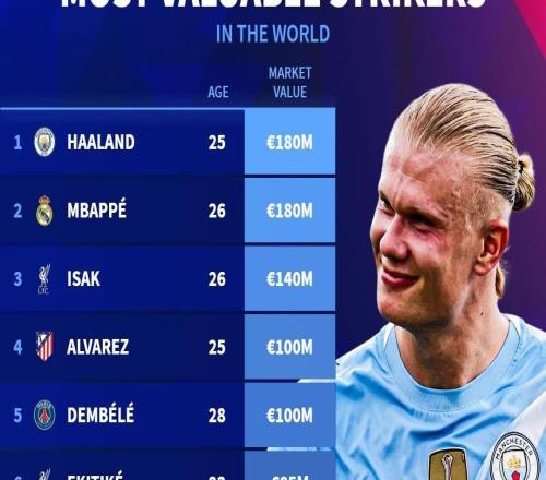 在完成最新一次身价更新后,德国转会市场网站列出了世界足坛中锋身价榜,哈兰德1.8亿欧居首,姆巴佩紧随其后。德转列世界足坛中锋身价榜1. 哈兰德 曼城 25岁 1.8亿欧2. 姆巴佩 皇